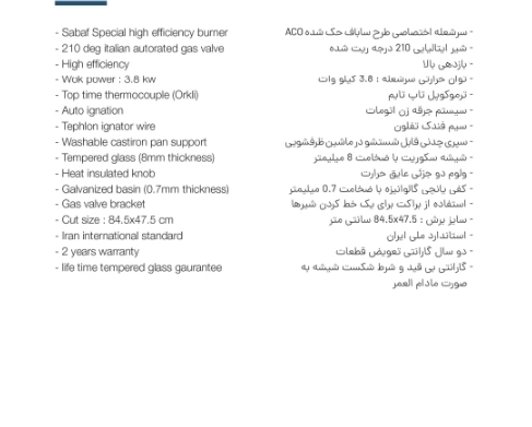 توان حرارتی سرشعله : 3.8 كيلو وات