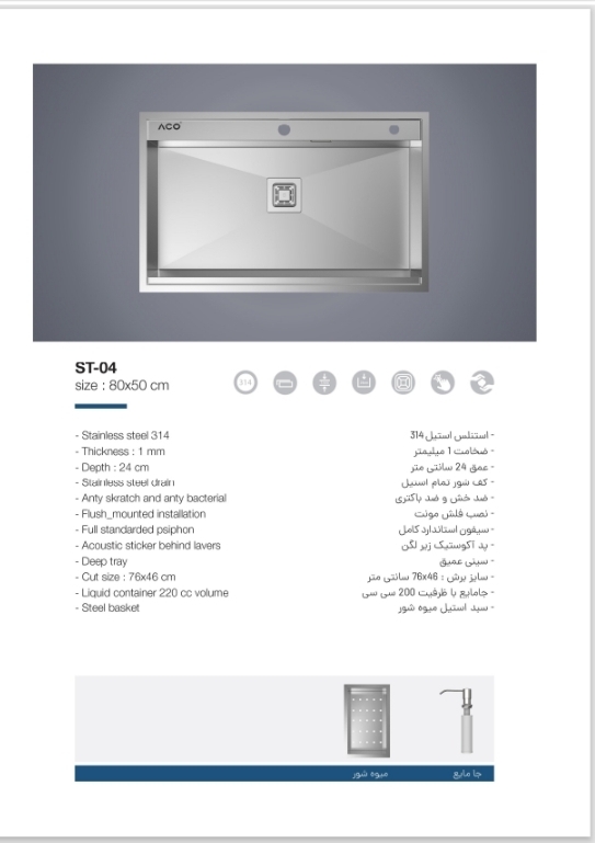 سینک مورد نظر دارای سیفون استاندارد کامل