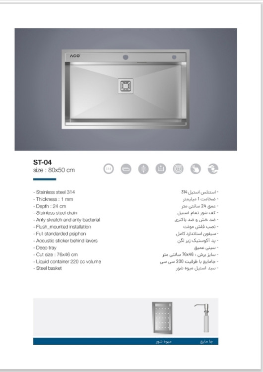 سینک مورد نظر دارای سیفون استاندارد کامل
